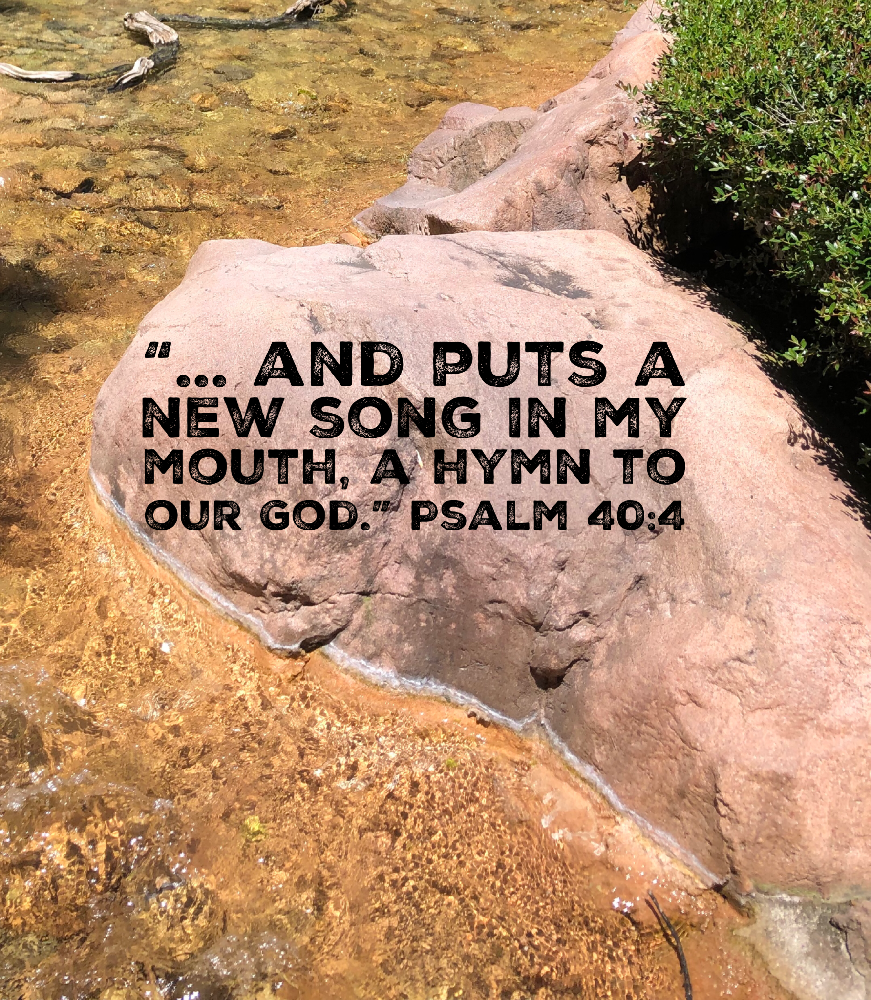 “I wait for the Lord, who bends down to me and hears my cry, draws me up from the pit of destruction, out of the muddy clay. Sets my feet upon rock, steadies my steps and puts a new song in my mouth, a hymn to our God.” Psalm 40:2-4